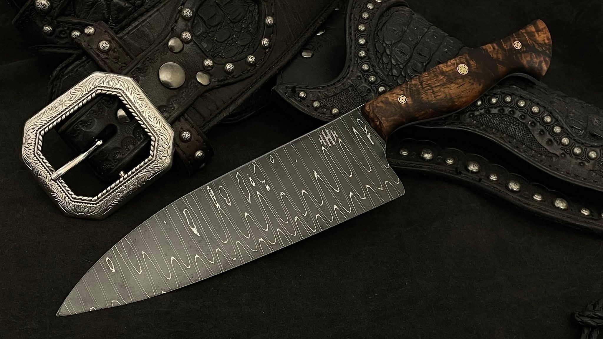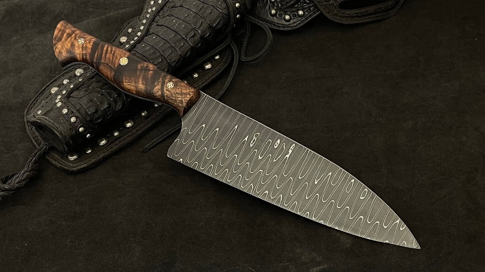 This knife will do it all! A Deba inspired shape with our signature high contrast n200 damascus and equally as stunning koa handle.