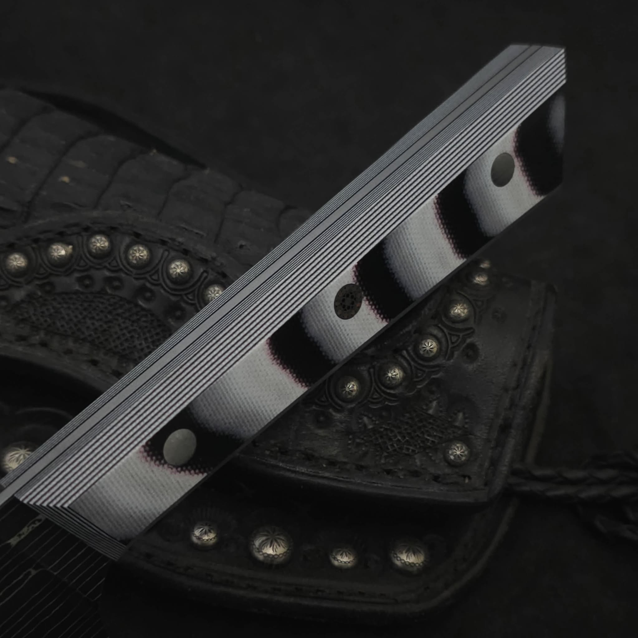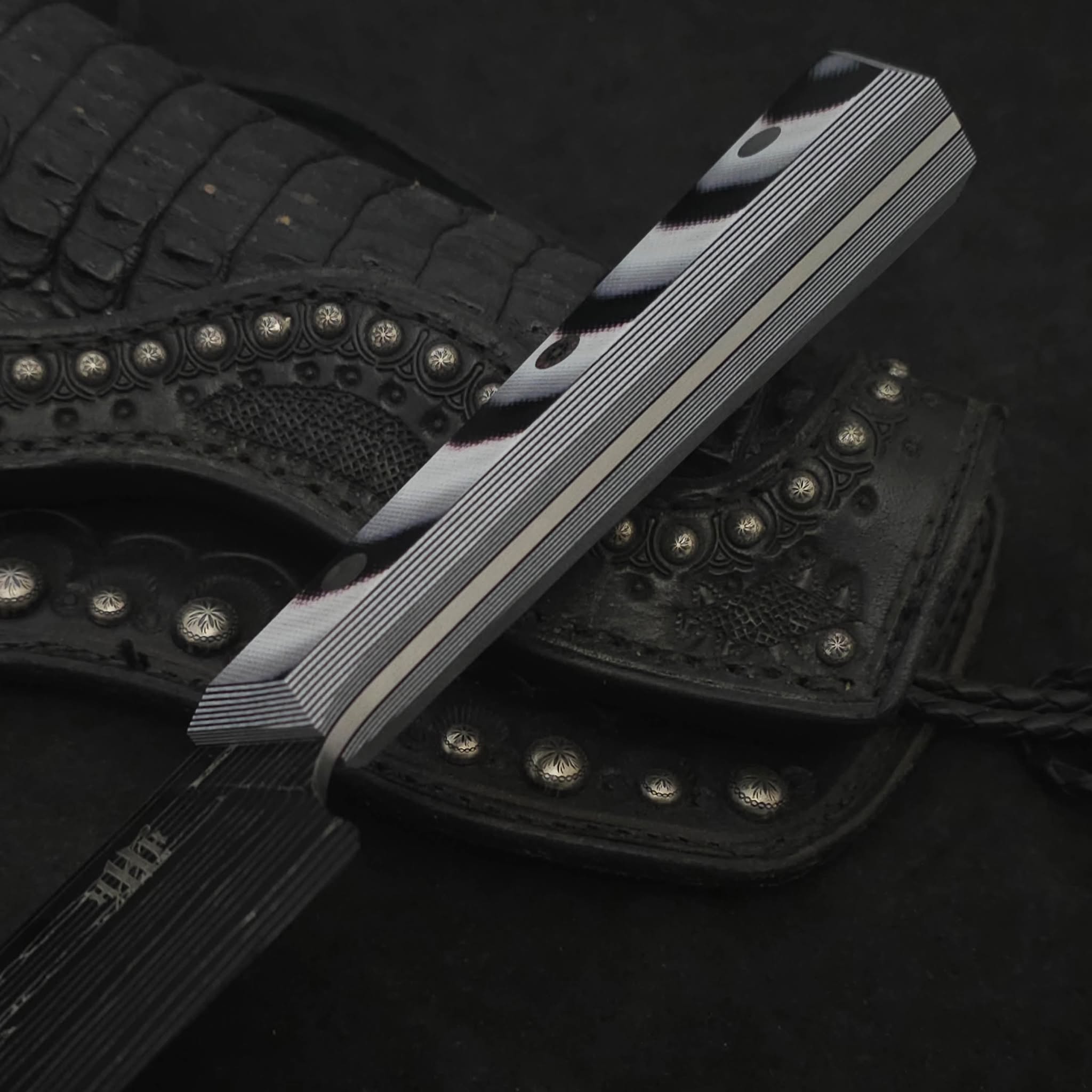 Handle material: Black and white layered micarta
