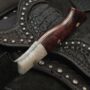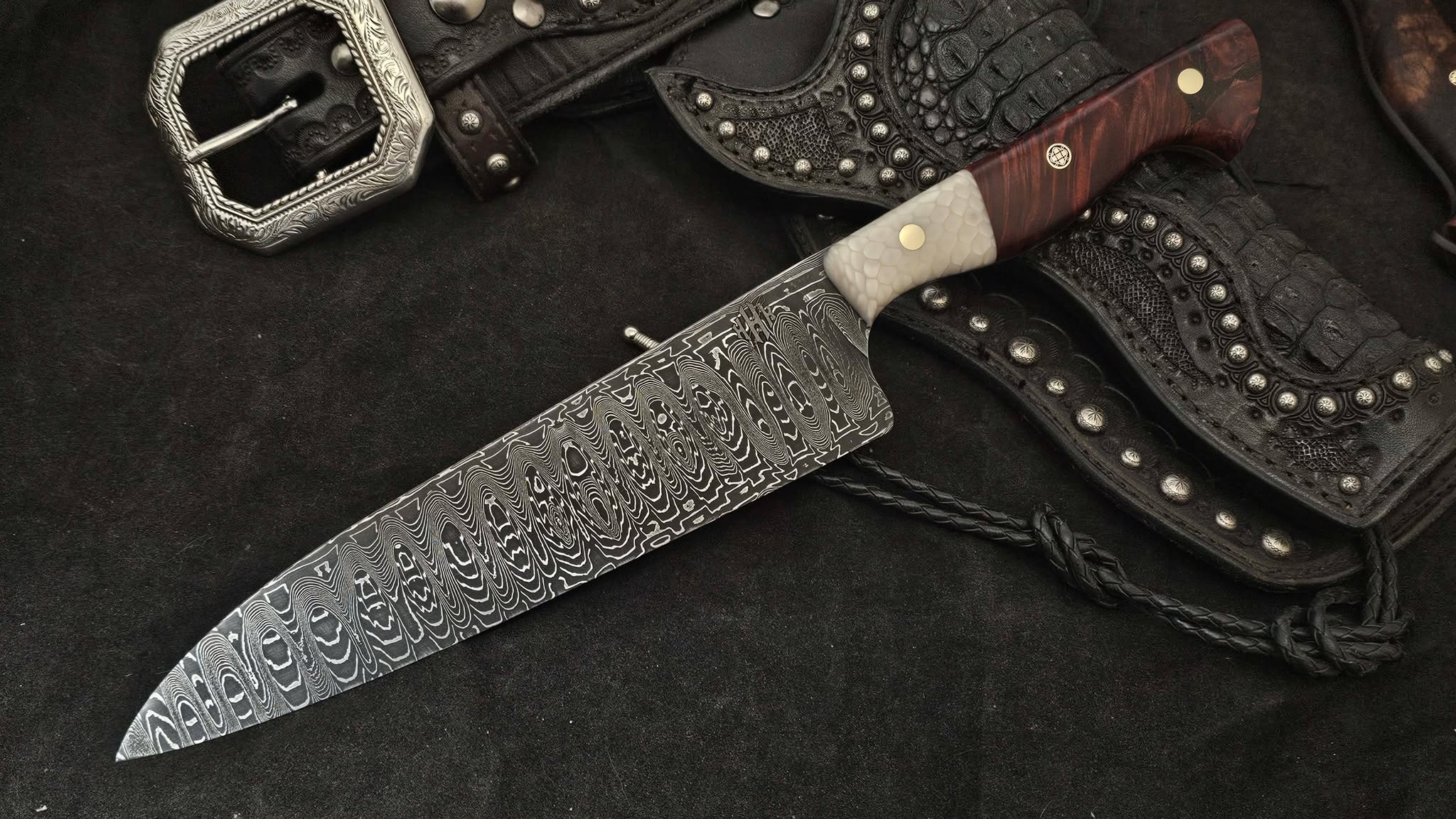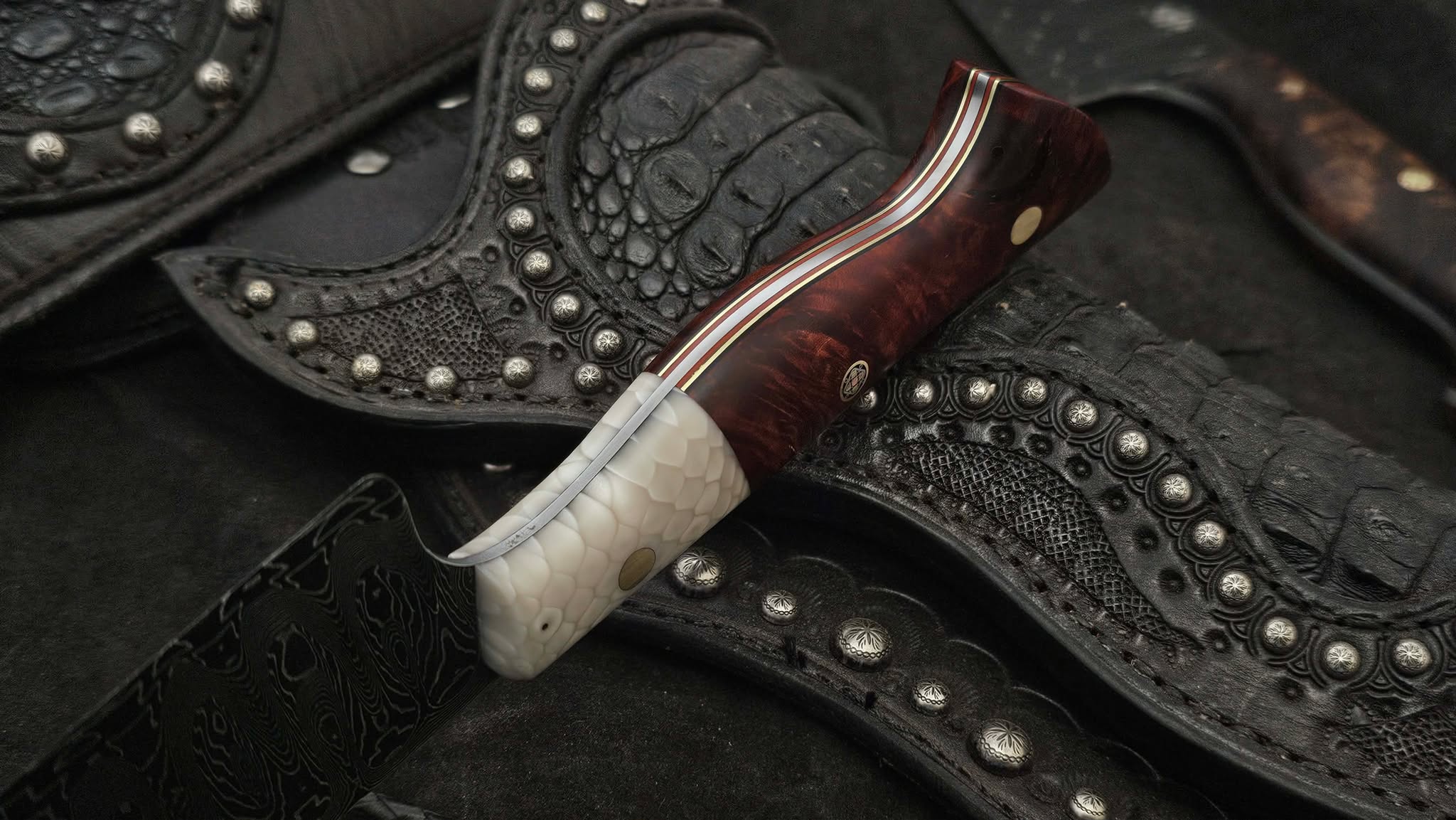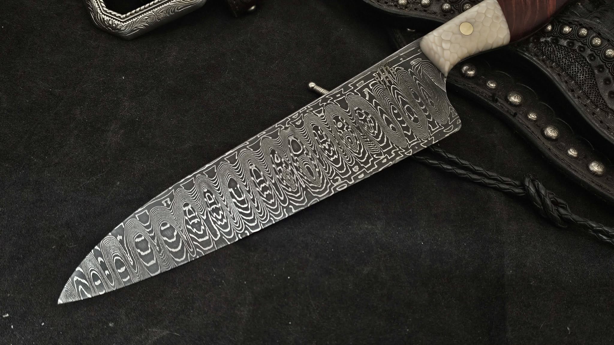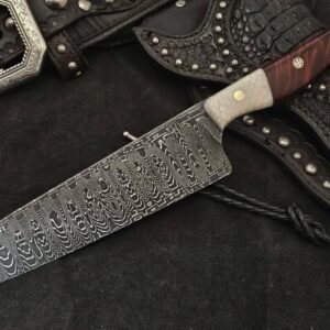 This knife came to me in a vision when i saw the blade sitting there and recalled the dragon scale juma and the fiery red buckeye, and “the dragons talon” was born. A sleek looking fantasy inspired petty. with our signature high contrast Damascus; it’ll be noticeable from across the room. just dont be too surprised if a weary looking adventurer asks you what dungeon you found it thing in.